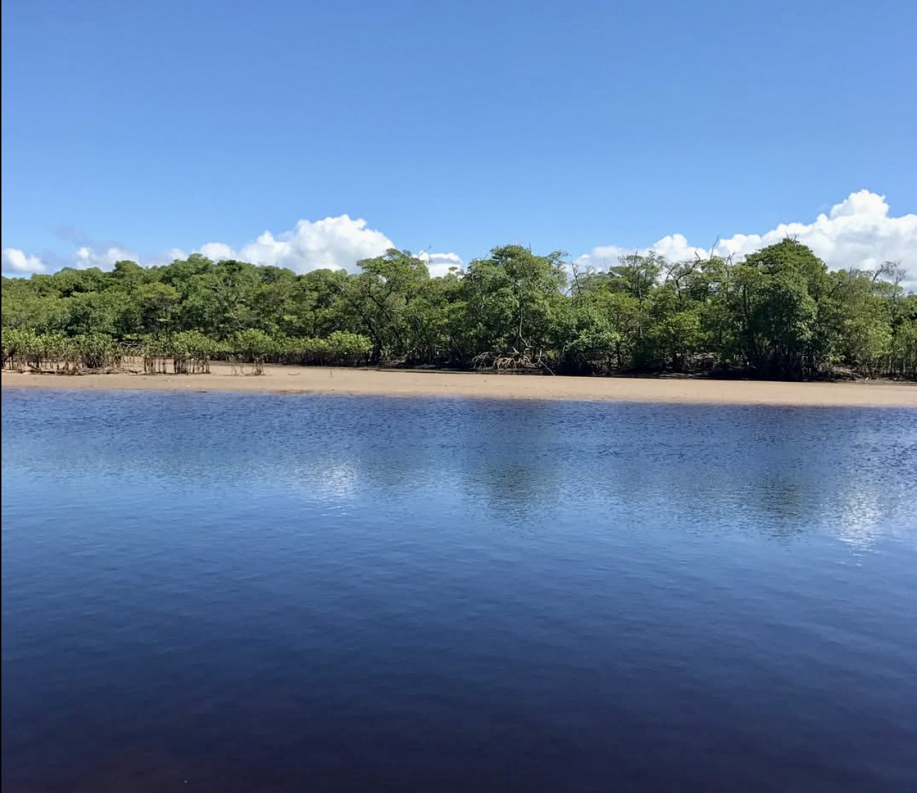 O espetáculo natural do Rio Carapitangui está no ponto em que suas águas doces encontram as águas salgadas do mar. Nessa foz, a areia fina, frequentemente molhada pela maré e pelas correntes do rio, forma um “tapete” claro, de tonalidade creme, que se mistura aos reflexos do azul-marinho.