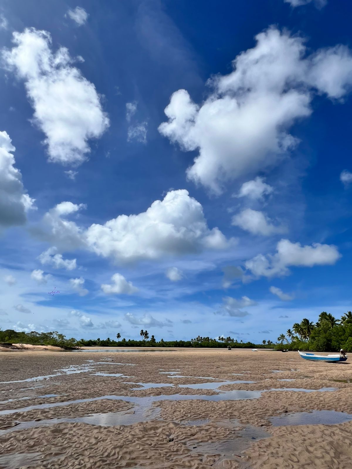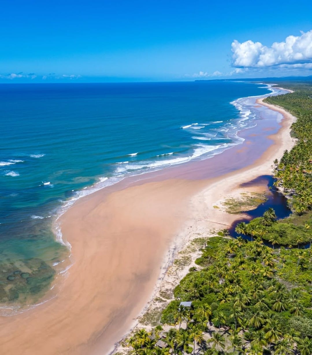 A Praia de Campinhos é um verdadeiro refúgio natural da Península de Maraú, conhecida por suas águas calmas, coqueiros alinhados e clima de vila de pescadores. O acesso pode ser feito de carro, quadriciclo ou por mar, em um trajeto que já é um passeio à parte.