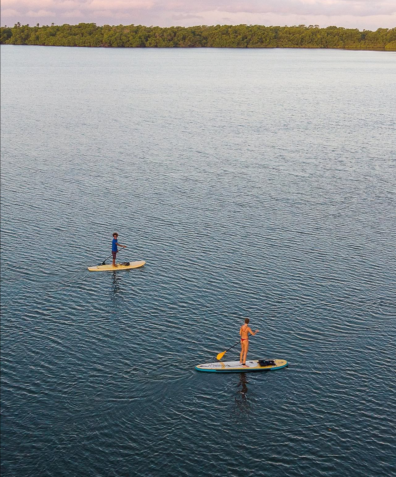 Além disso, é possível praticar atividades como stand-up paddle ou caiaque nas águas mais calmas do rio ou no manguezal que o cerca. Para quem gosta de tranquilidade e observar natureza, esse mix de rio + mar + vegetação é um prato cheio.